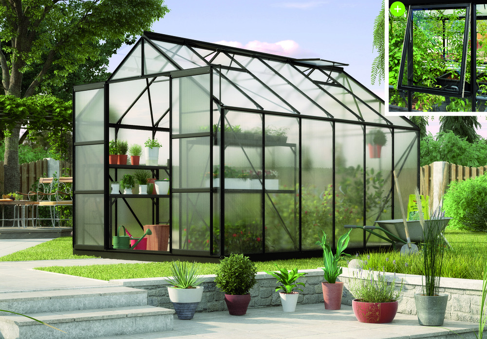 Geniet van ruimte en comfort met de Jupiter 9900 tuinkas. Met een oppervlakte van 9,9 m² en keuze uit verschillende beglazingsopties, is dit de perfecte plek voor uw planten. Met een solide constructie, 15 jaar garantie op het frame en onze professionele montageservice, biedt de Tuinierwinkel u kwaliteit en gemak.