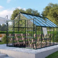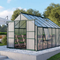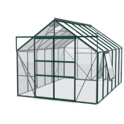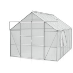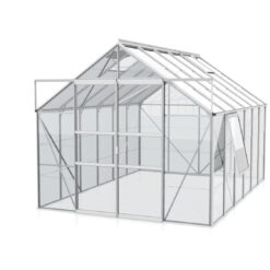 Meridian 9900 tuinkas biedt met zijn 9,9 m² het ultieme tuiniergenot. Deze kas creëert de perfecte omgeving voor een breed scala aan gewassen, zowel groot als klein. Met een hoogte van 197 cm kun je moeiteloos rechtop staan, terwijl de ruime breedte van 384 cm voldoende ruimte biedt om aan beide zijden van de kas te tuinieren. Geniet van eenvoudige toegang dankzij de gebruiksvriendelijke schuifdeur.
