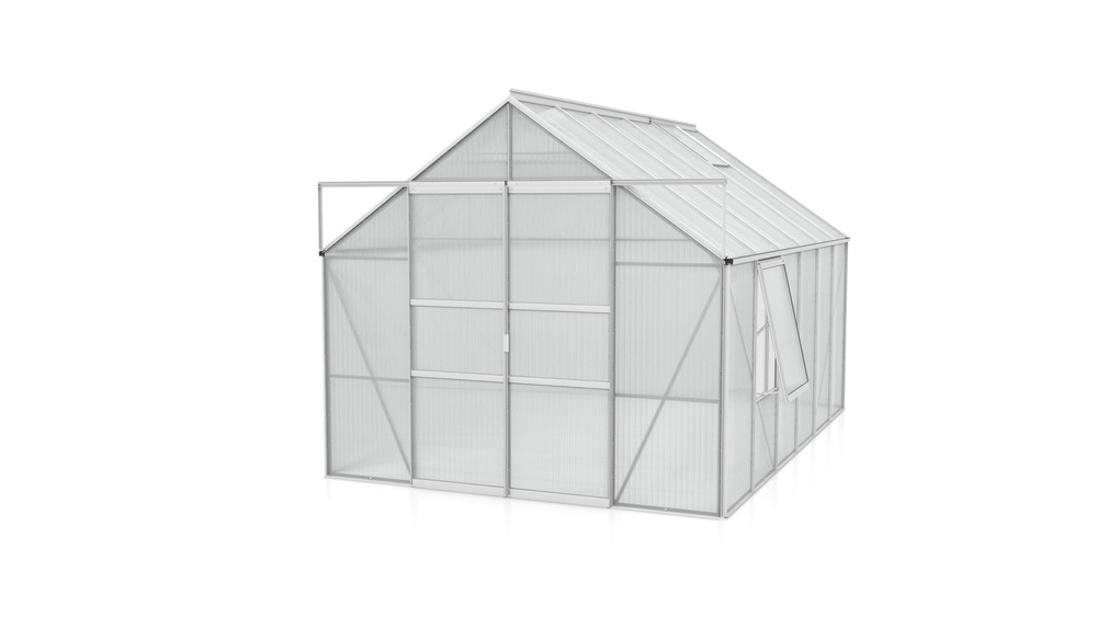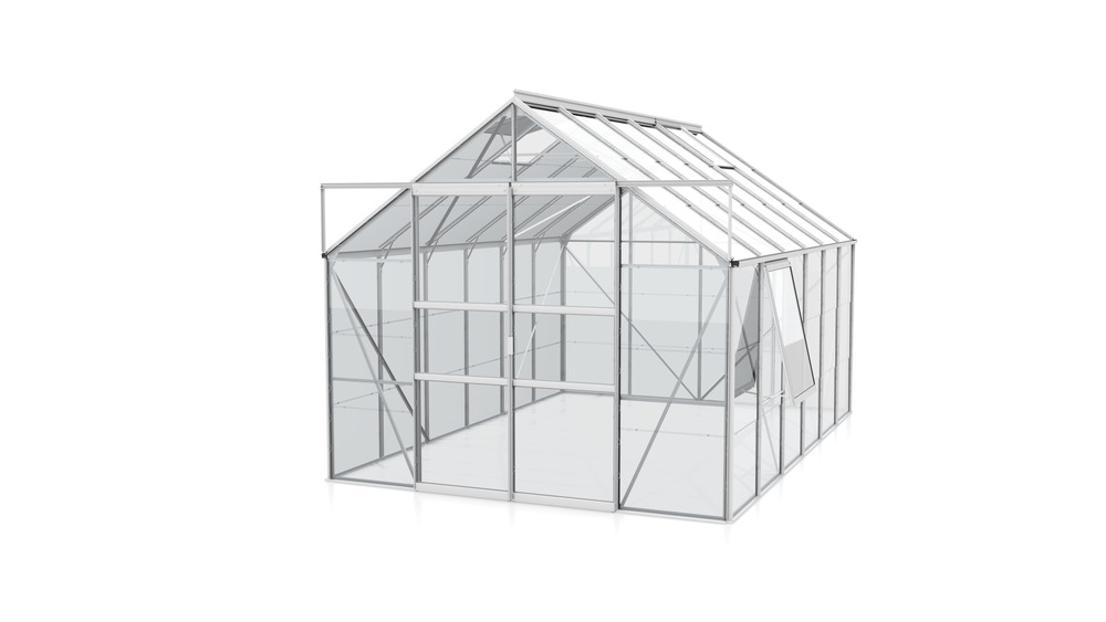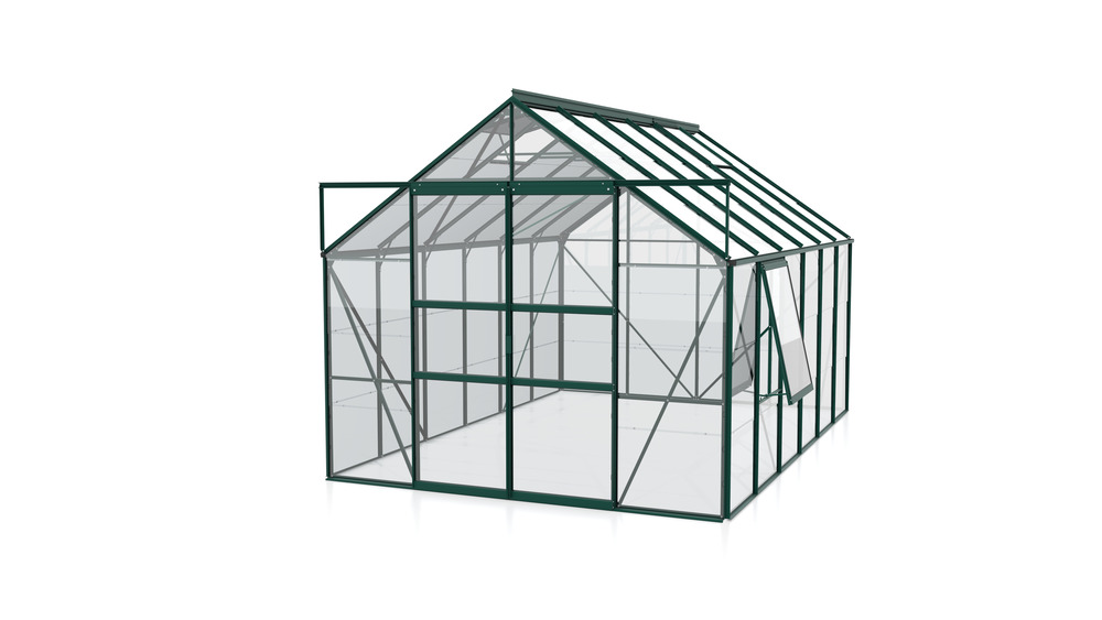 Meridian 9900 tuinkas biedt met zijn 9,9 m² het ultieme tuiniergenot. Deze kas creëert de perfecte omgeving voor een breed scala aan gewassen, zowel groot als klein. Met een hoogte van 197 cm kun je moeiteloos rechtop staan, terwijl de ruime breedte van 384 cm voldoende ruimte biedt om aan beide zijden van de kas te tuinieren. Geniet van eenvoudige toegang dankzij de gebruiksvriendelijke schuifdeur.